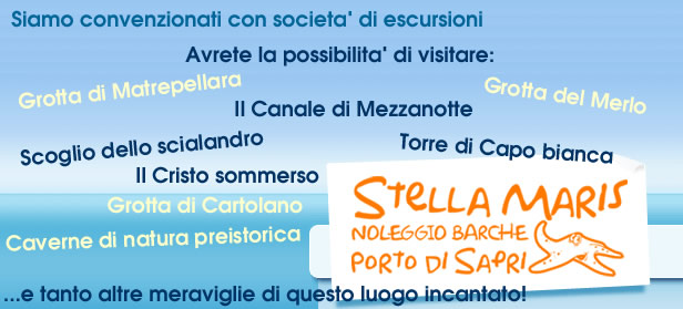 Il porto turistico di Sapri, si trova a circa 700 mt. dalla nostra struttura, sulla S.S. 18 che conduce a Maratea, qui si puó noleggiare una barca e vedere lo scoglio dello Scialandro, ove è stata posta la statua in bronzo della spigolatrice: fanciulla dell'immaginario di Luigi Mercantini, che narra lo sbarco di Carlo Pisacane e dei suoi 300 uomini proprio sulle spiagge prospicenti Sapri, la splendida costa Sapri/Maratea, ricca di calette, spiagge raggiungibili solo via mare, grotte marine visitabili in barca, in alcune delle quali sono stati rinvenuti oggetti e graffiti dell'etá del bronzo, fondali e paesaggi subacquei da visitare in compagnia dei nostri esperti accompagnatori, splendidi tramonti, acque cristalline.